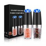 - 【Automatic Operation】Our Electric Pepper and Salt Grinder with Gravity sensor switch, you even needn’t to press a button, Simply flipped the grinder and you will have fresh ground spices, Convenient and funny. Battery powered, each grinder requires 6 AAA batteries (batteries not included).