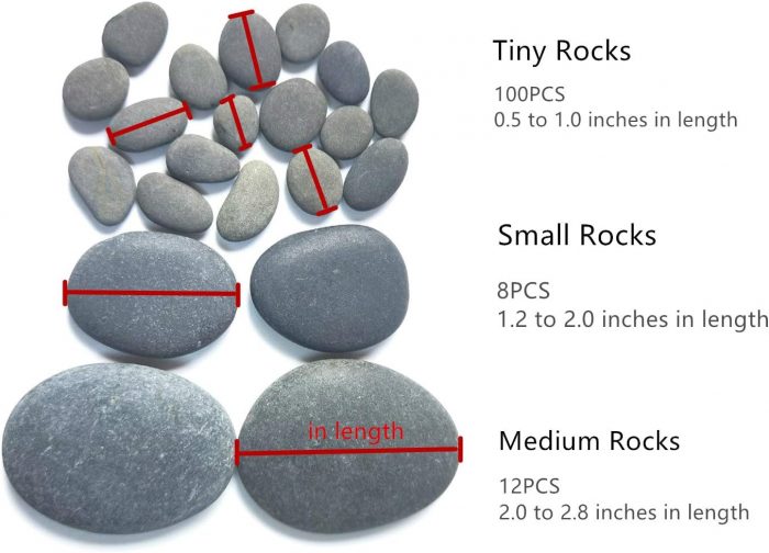 - 【 Multi-Size】-3 sizes are available ,Medium ,Small and Tiny stones .Satisfy your various DIY ideas . The stones about 8PCS 1.2 to 2.0/12PCS 2.0 to 2.8/100PCS 0.5 to 1.0 inches in length.All great for rock art .These are fun to paint, also acrylic paint pens can be used on them for design and then spray acrylic sealer over paint.