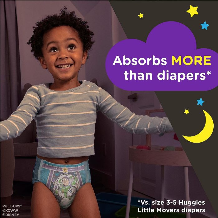 - Only Pull-Ups Night-Time has Disney·Pixar graphics of Buzz Lightyear from Toy Story that fade when wet so you can celebrate dry nights with your Big Kid; product and packaging may vary from image shown